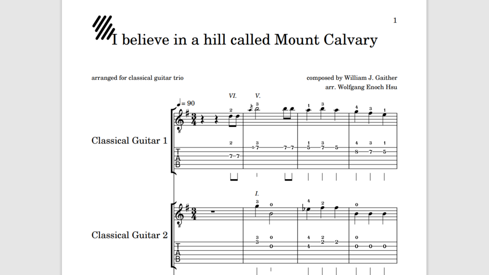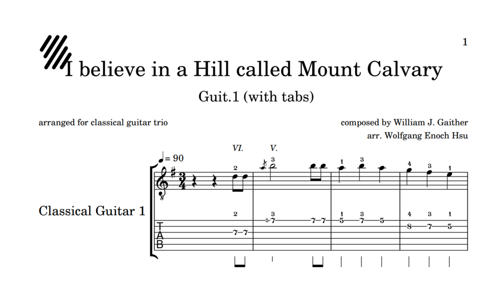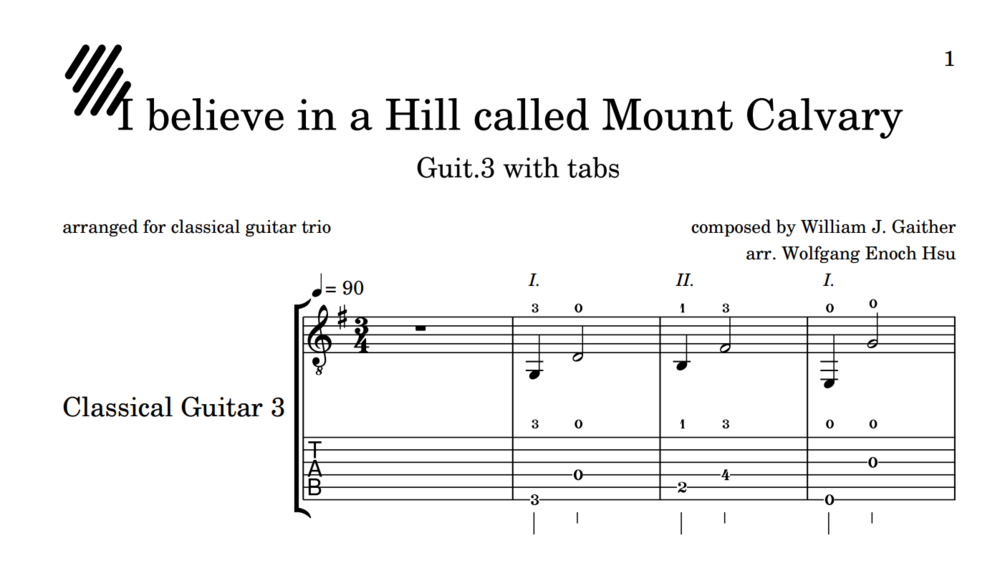 I believe in a hill called Mount Calvary - guitar trio (sheet music)