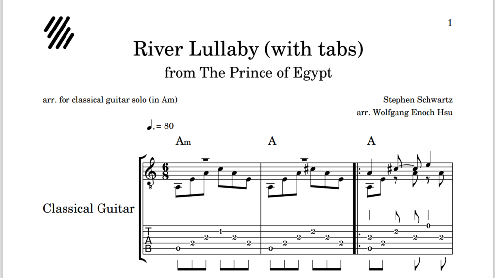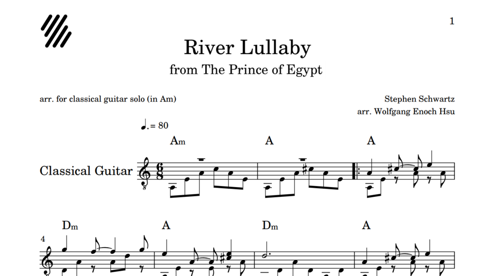 River Lullaby (from The Prince of Egypt) guitar sheet music