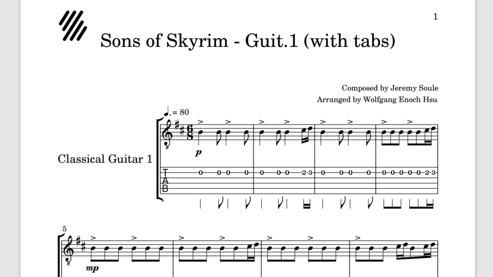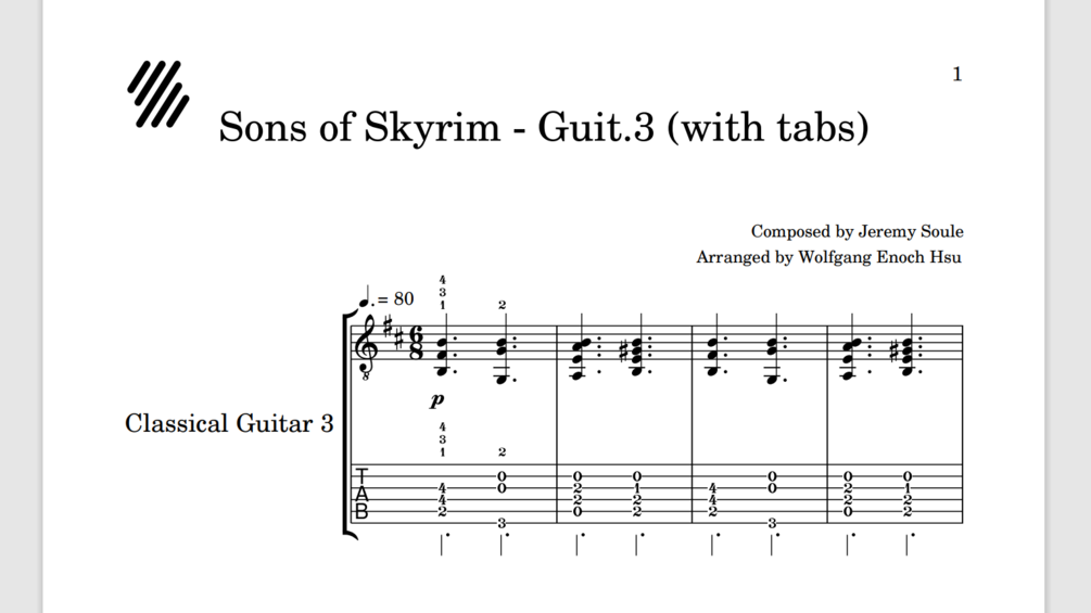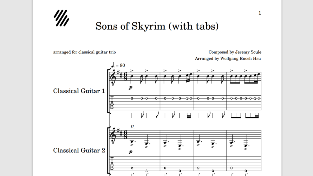 Sheet music for classical guitar trio, including full score and separate sheet music for each parts