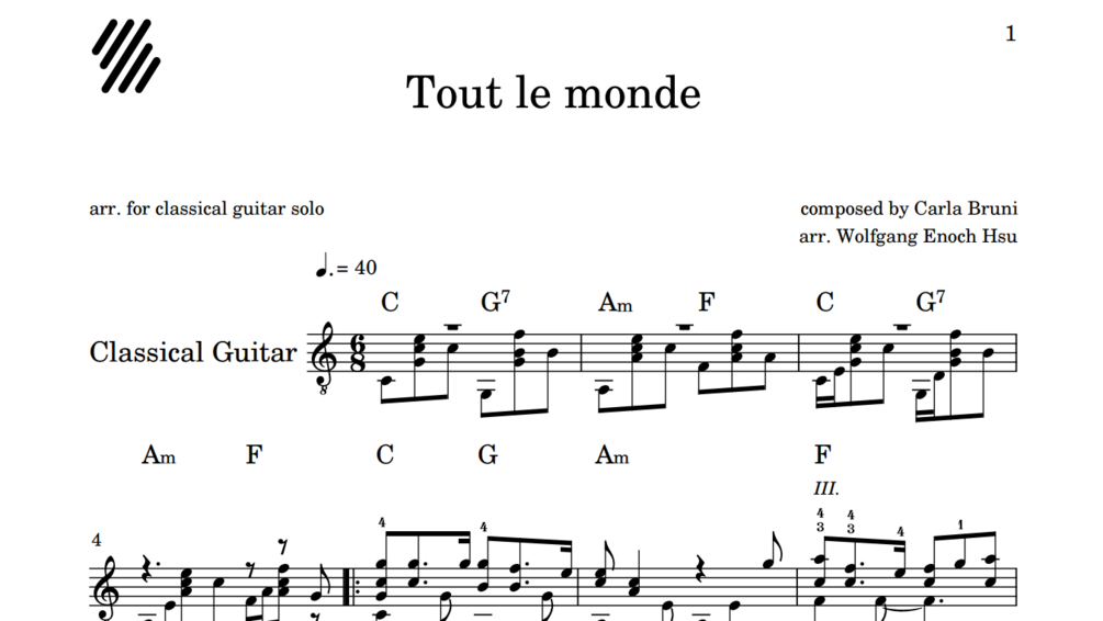 Carla Bruni - Tout le monde (guitar sheet music)