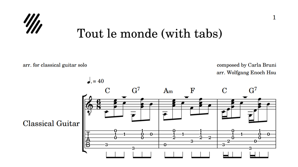 Carla Bruni - Tout le monde (guitar sheet music)